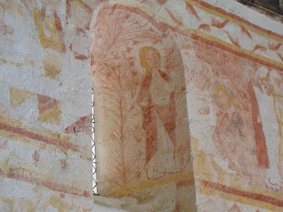 des vestiges du 12e siècle sur le mur nord de la nef.